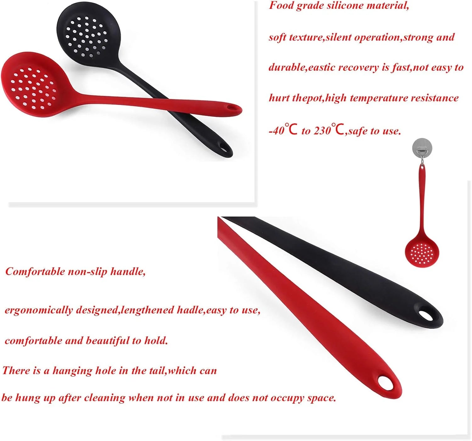 Silicone Skimmer Spoon Non-Stick Cooking Slotted Colander Spoon Skimmer Strainer Kitchen Sink Ladle Strainer Silicone Filter Spoon
