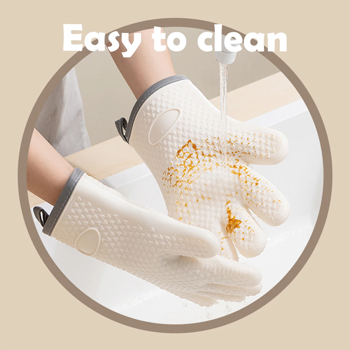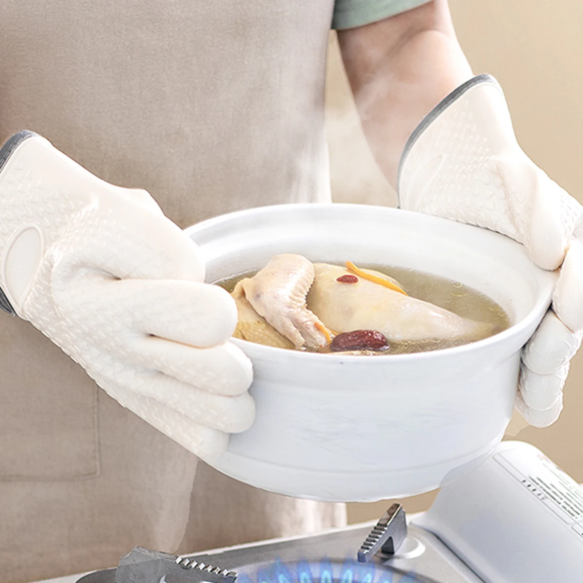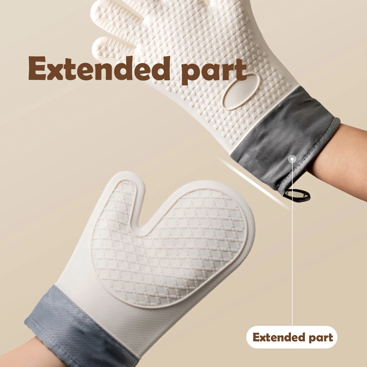 WMMO Anti-scald Oven Gloves Thickened Silicone Insulation Non-slip High Temperature Resistant Kitchen Oven Baking Gloves